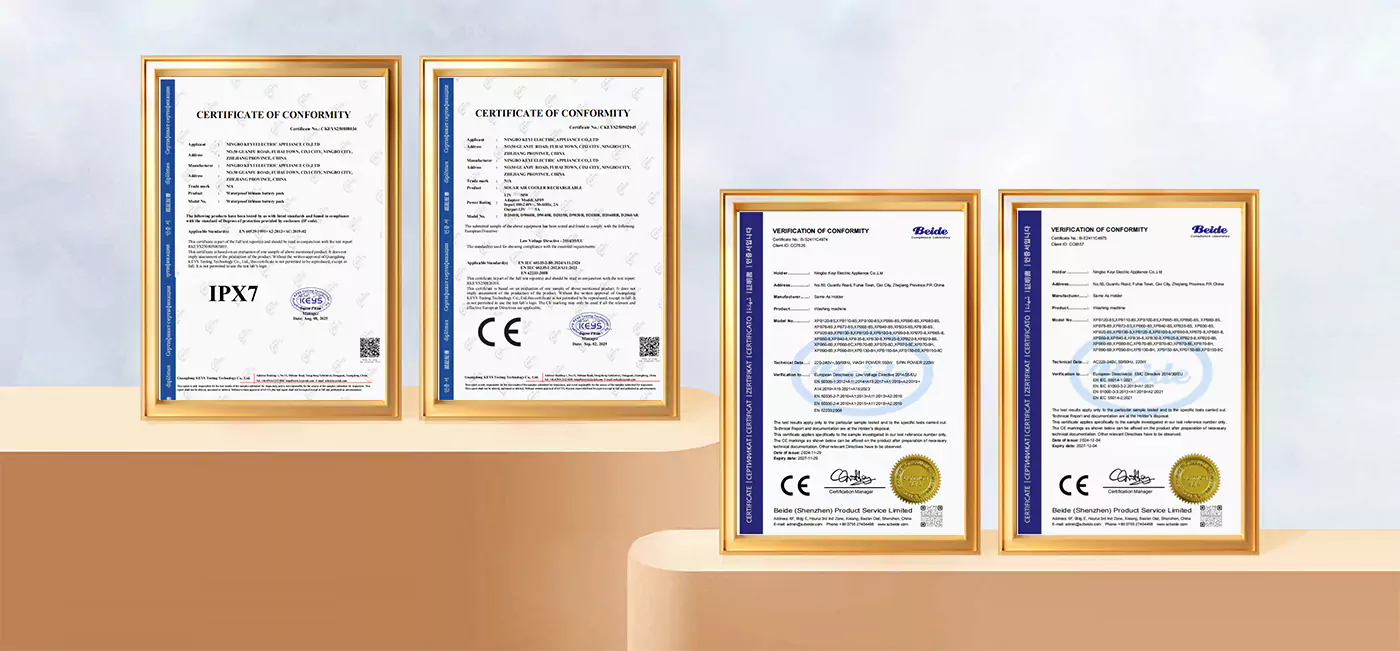 हाम्रा वाशिङ मेसिन र एयर कूलरहरूले EU परीक्षण मापदण्डहरू पास गरेका छन् र CE प्रमाणीकरण प्राप्त गरेका छन्। ब्याट्रीले IPX7 वाटरप्रूफ रेटिंग प्रदान गर्दछ। हामी घरेलु ई-कमर्स प्लेटफर्म र अलिबाबामा उत्कृष्ट विक्रेताको रूपमा पनि प्रमाणित छौं।